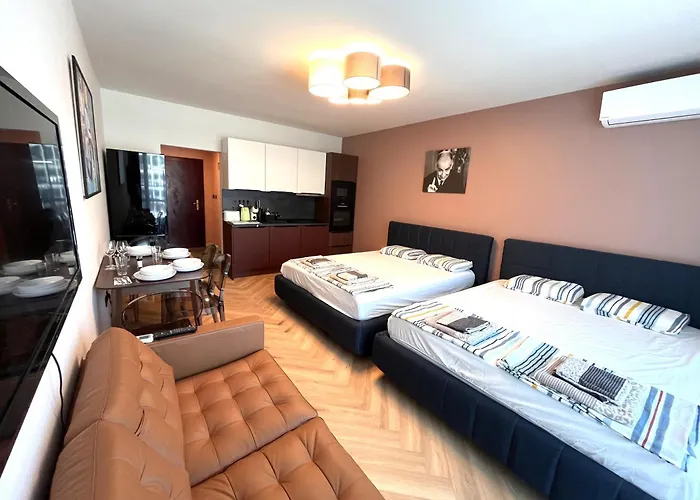 Автобусна спирка Hrizantema е на 200 метра от апартамента на Miramar Front Beach Family Deluxe Studios No Swim Pool Access. Гостите са поканени да се отпуснат в терасата.